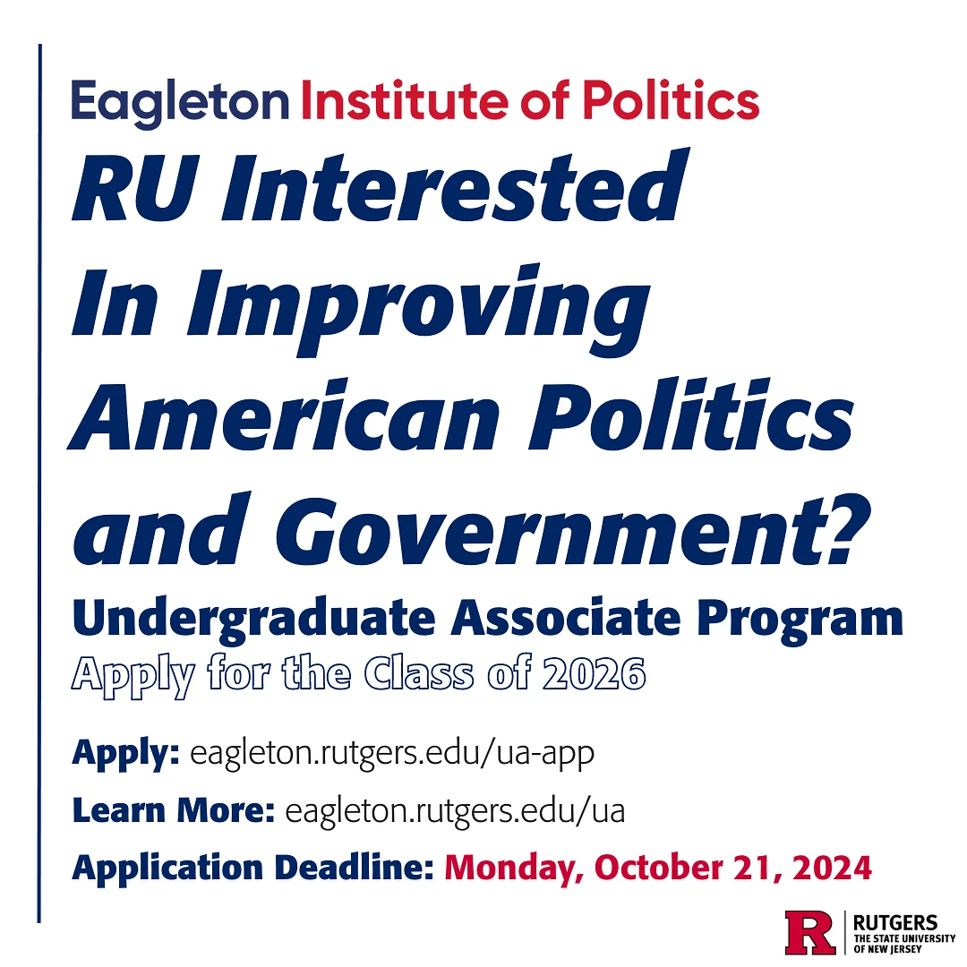 Recommendation letters are also due by OCTOBER 21 at 5:00 pm by email from recommender to undergrad@eagleton.rutgers.edu.